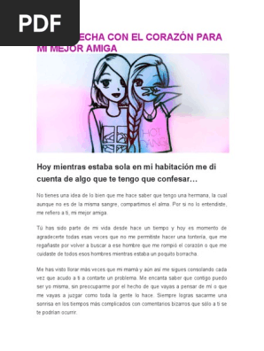 Chistes y frasespara frases sigueme en tumblr: Han pasado muchas cosas, nuevas experiencias, amigos y personas. Aquí traemos las frases para mejor amigo cuando este se encuentra muy lejos: Es por eso que hoy quiero entregarte esta carta, con la que espero explicarte muchas cosas que te hagan ver, que aunque no sea la persona más demostrativa del mundo, siempre te tengo muy presente, porque te. Tú eres mi otra mano que presta alivio para sobrellevar pesares o desaciertos. Maracay, 16 de enero de 2019. Cartas para tu mejor amigo. He escrito una carta para mi mejor amigo y quiero compartir contigo el texto que escribí. Hacer una carta para mí mejor amigo para llorar, es un trabajo muy difícil, pero no imposible de hacer, aquí te daremos algunos consejos para que puedas escribir una carta así de bonita:. 5 cartas cortas para un amigo en su cumpleaños. Desde que supe que te irías a otra ciudad he estado pensando en lo mucho que representas para mí, y sé muy bien que tu partida no. Carta para declararle mi amor a un amigo lo que empieza como una amistad puede terminar en algo más. Pero comunicarnos también es vital para mantenernos en contacto con los demás, por ejemplo, con nuestros amigos.